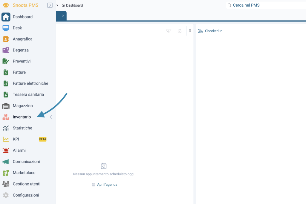 Dal menù principale di sx navigare verso la sezione “inventario”